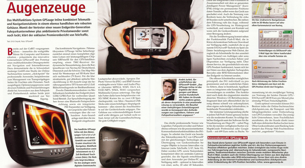 04.02.2008 - Neues Telematikgerät von GPSoverIP besitzt auch Mutimedia –Funktionen und Navigation. Für die Vorstellung eines neunen Telematik-Endgerätes GPSauge In1 hatte das Schweinfurter Unternehmen GPSoverIP eine Show organisiert, die nicht ...