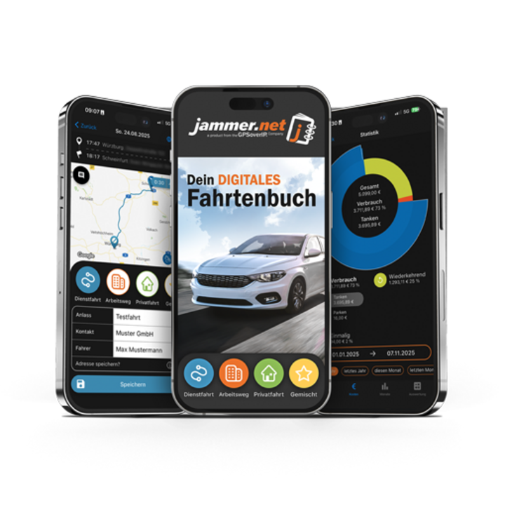 Mit jammer.net bieten wir Ihnen ein elektronisches Fahrtenbuch, das aus einer Fahrtenbuch-App und einem kompakten OBD-Stecker besteht. Beide Komponenten arbeiten nahtlos zusammen und erfassen Ihre Fahrten automatisch im Hintergrund. Start- und Zielorte, Strecken, Dauer der Fahrt und Kilometer werden präzise per GPS erkannt.